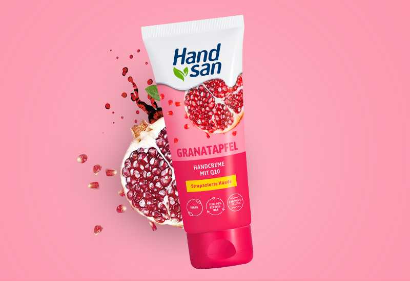 Die Handsan Granatapfel Handcreme ist als 90 ml Tube erhältlich.